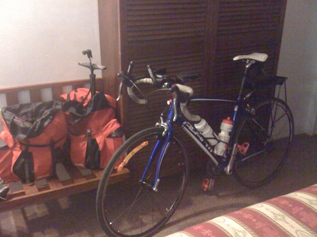 - Figure out how to take things with me. Being a pretty fancy bike I don’t have any braze-ons to attach a rack, and the idea of attaching a trailer to a racing bike seems a bit … improper. So I need to figure out a way to jury-rig a rack and get panniers that are big enough to carry my floor pump and a lot of spare tubes.