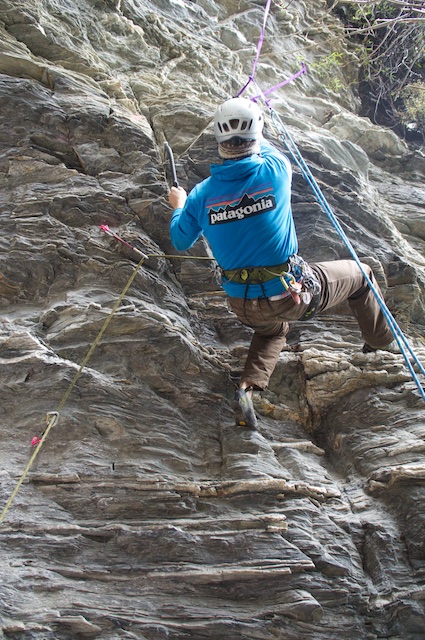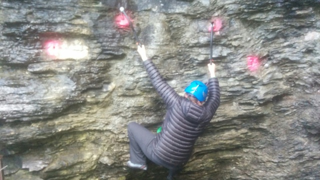 On arriving in Queenstown I called one of the other Aussies I knew was in town for the festival and discovered we were staying at the same place. He was just about to go ‘dry tooling’ with two other people from Canberra, so I introduced myself and invited myself along. Dry tooling is where you use ice tools: