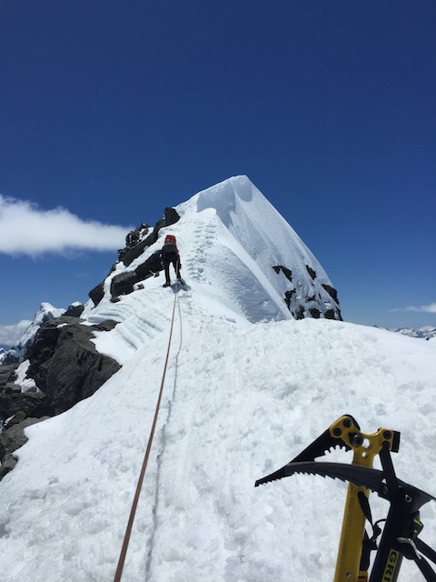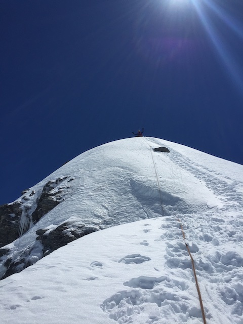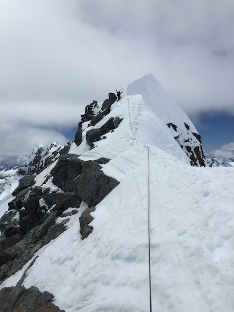 An exposed, sharp ridge line for the final pitch gets us to the summit. Woo!