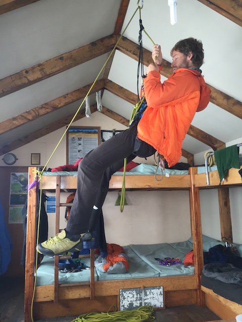 Cooking, tea, puzzles, card games and teaching Brittany hut-bound crevasse rescue and hauling systems.