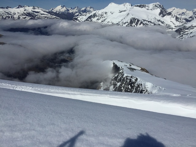 Leave at 7 for Mainroyal and turn back after crossing the ridge to the Dipso Glacier and being met with heavy snow. Return to the hut as the Aussie group of 3 we flew in with are leaving, at 9.30.