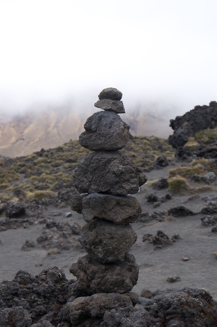 The Northern Circuit is a loop stretching a little over 60km, normally done in four days and including the Tongariro Crossing, a popular day walk passing “Mt. Doom” (Mt. Ngauruhoe in real life) and some astonishing-coloured volcanic lakes (no photos of those because it was raining when we passed them).